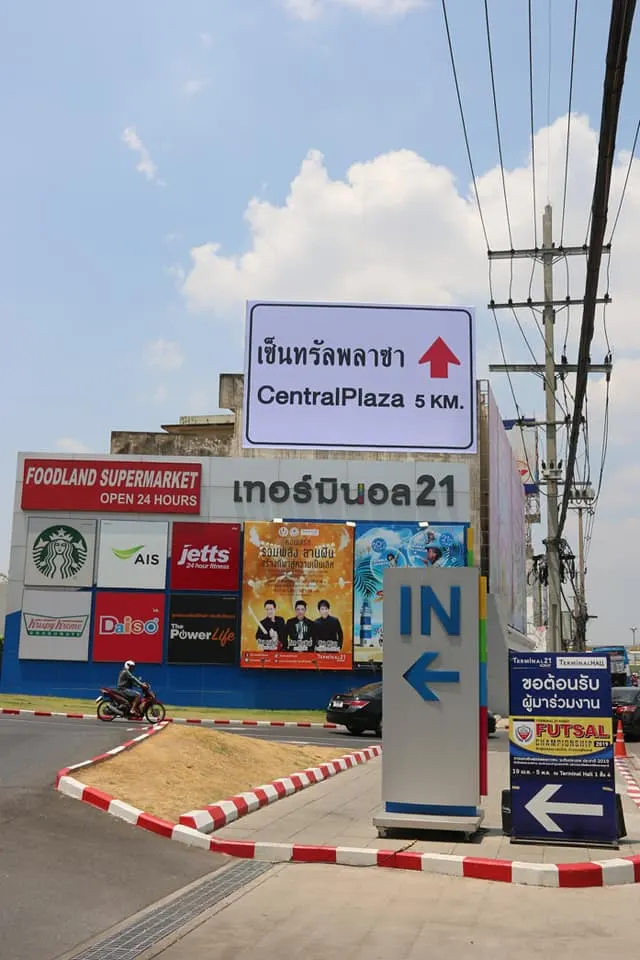 เพจฮักนะโคราช2 ได้โพสท์ภาพป้ายบอกทางไปเซ็นทรัล ที่ติดข้างตึก ด้านข้างเท้าเข้าห้าง terminal 21 โคราช แบบไม่เกรงใจคู่แข่ง โดยได้โพสท์ภาพนี้เมื่อวันที่ 23 เมษายน 62 ระบุว่า ‘เซ็นทรัล’ ผงาดป้ายหน้าห้างคู่แข่ง หลังกวาดซื้อที่ดินด้านหน้า ‘เทอร์มินอลโคราช’