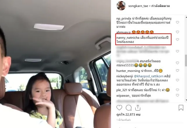 ล่าสุด หนุ่มสงกรานต์ได้ออกมาโพสต์คลิปขณะน้อง ปีใหม่ ลูกสาวกำลังร้องเพลงลอยกระทง พร้อมทั้งได้ระบุข้อความว่า...เพลงออกงานลูกพี่ปี แต่งานนี้ชาวเน็ตโฟกัสผิดจุดโดยไปสังเกตุสาวที่นั่งอยู่เบาะหลัง ว่าผู้หญิงคนนี้คือใครกันนะ คล้ายๆเสียงแม่ แอฟ เลย เอาเป็นว่าเราไปคลิปด้านล่างกันเลยดีกว่าจ้า