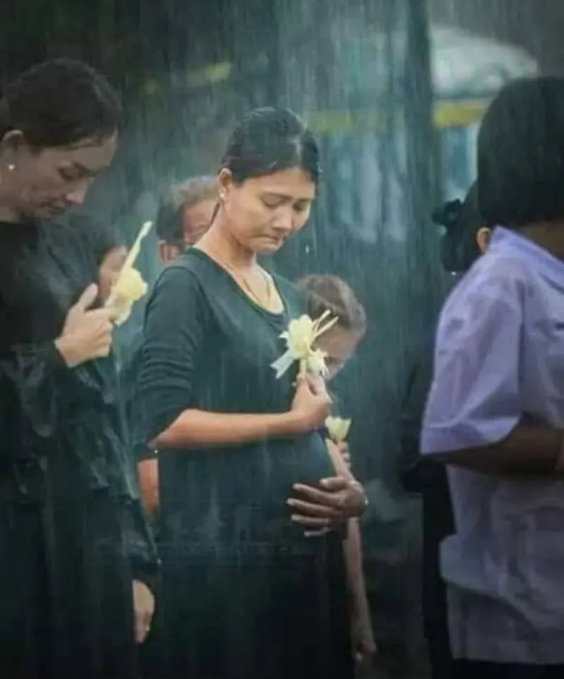 จำได้ไหม ภาพหญิงท้องต่อแถวถวายดอกไม้จันทน์ท่ามกลางสายฝน ล่าสุดเด็กในท้องโตแล้วนะ