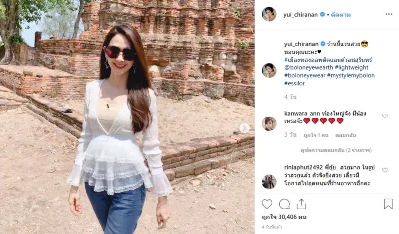 ล่าสุด ยุ้ย จีรนันท์ ได้โพสต์ภาพใส่ชุดลูกไม้สีขาวชายบานฟูฟ่องบอกเลยว่าสวยหวานเป็นอย่างมาก โดยระบุข้อความว่า ร้านนี้แว่นสวย ขอบคุณนะคะ #เมืองทองออพติคแอนด์วอชสุรินทร์