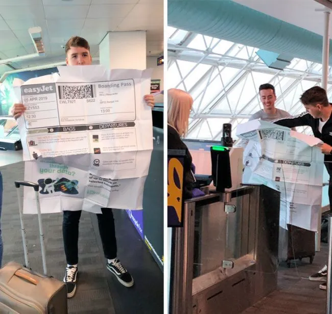 4 ชายคนนี้พิมพ์บอร์ดดิ้งพาสสำหรับการเดินทางของเขา เพื่อสร้างความประทับใจอย่างไม่น่าเชื่อที่สนามบิน