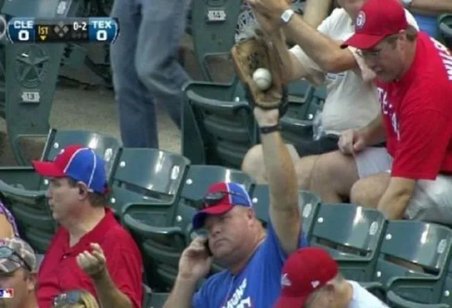 10 ในขณะที่มีเกมส์เบสบอล ชายคนนี้ยกมือรับลูกบอลที่โยนมาใกล้ๆเขาอย่างนิ่งๆ แม้ว่าเขากำลังคุยโทรศัพท์อยู่ ชิลล์สุดๆไปเลย