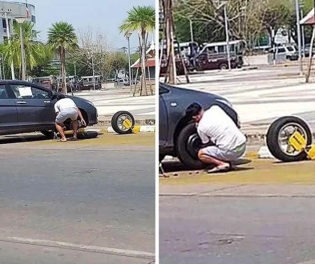 14 ผู้ชายคนนี้ไม่ต้องการจ่ายค่าปรับ ดังนั้นเขาจึงถอดล้อออกไป แบบเนียนๆ