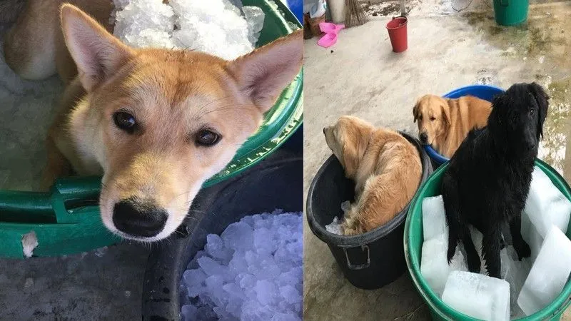 กลัวน้องจะเป็นฮีทสโตรก -เพราะรักจึงยอม จับเจ้าตูบ แช่น้ำแข็งดับร้อน