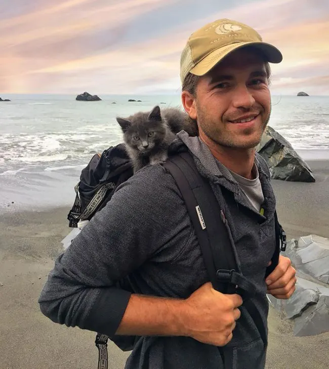 7 “หนึ่งในภาพถ่ายโปรดเมื่อเดินทางกลับ เมื่อลูกแมวตัวนั้นอยู่บนหลังของพ่อ”