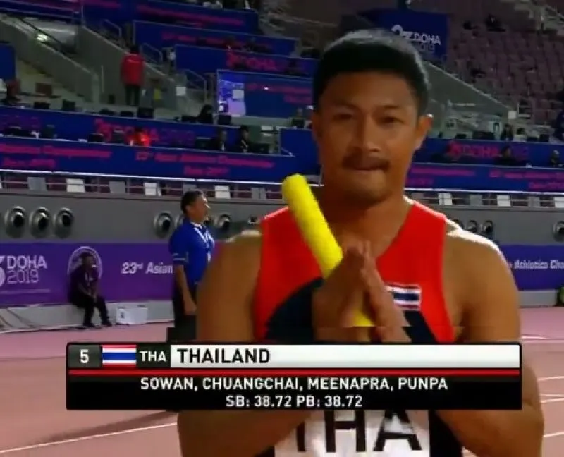 เรียกได้ว่าเป็นเรื่องราวที่สร้างชื่อเสียงให้กับประเทศไทยอย่างมากเลยทีเดียว ทีมผลัด 4X100 เมตรชาย คว้าเหรียญทองกรีฑาชิงแชมป์เอเชีย ที่กาตาร์ แม้จะวิ่งเข้าเส้นชัยเป็นอันดับ 2 ด้วยเวลา 38.99 วินาที เนื่องจากจีน ที่วิ่งเข้าที่ 1 ด้วยเวลา 38.88 วินาที ทำผิดกติกาวิ่งเหยียบเส้นคู่ต่อสู้ ทำให้ถูกปรับแพ้ฟาล์ว และเป็นทีมหนุ่มไทย ที่ก้าวขึ้นมากระชากแชมป์แทน