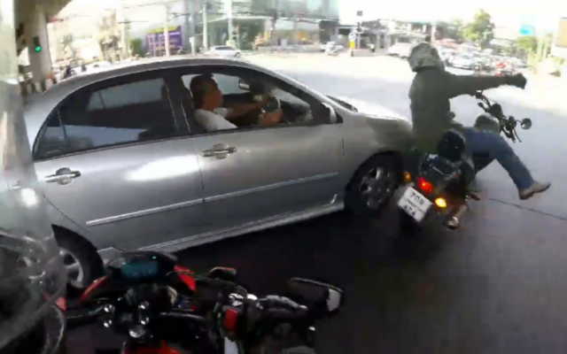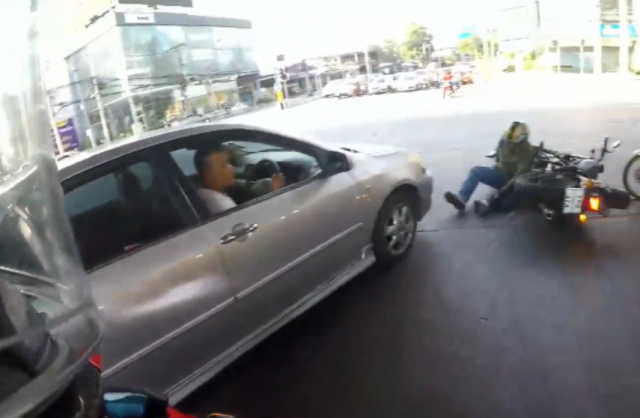 อนาคตผมใครรับผิดชอบ เก๋งฝ่าไฟแดง ชนหนุ่มมอร์ไซค์ ขาหัก เห็นแล้วสะเทือนใจสุดๆ (คลิป)