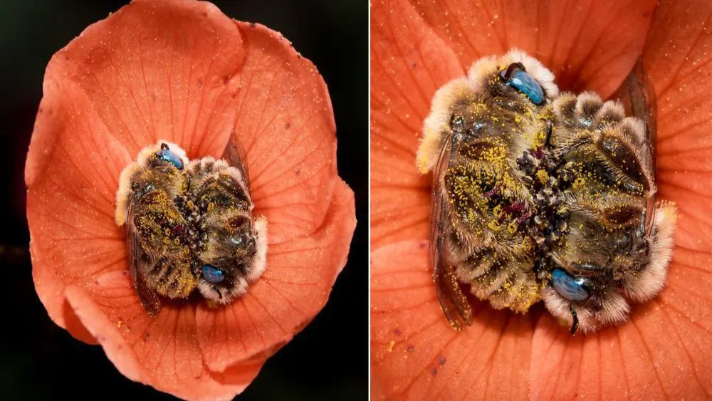 น่ารัก! สองผึ้งน้อยนอนขดตัวในดอกไม้ ภาพจริงจากธรรมชาติสุดแสนจะประทับใจ
