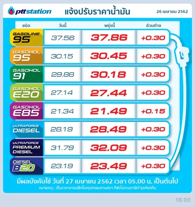 จัดไป! จ่อปรับราคาน้ำมันพรุ่งนี้