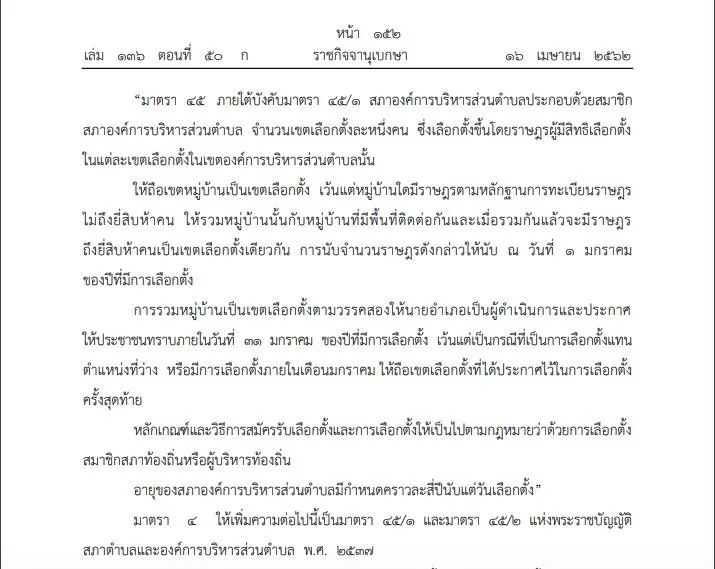 ราชกิจจาฯ ประกาศ พ.ร.บ. อบต. ลดสมาชิกสภา อบต.เหลือหมู่บ้านละ1คน