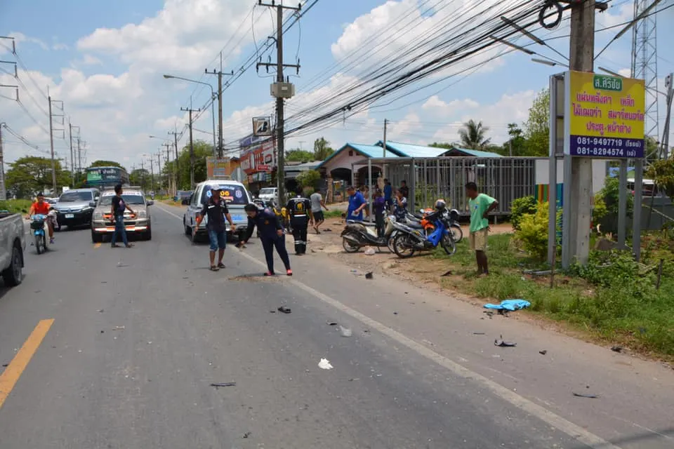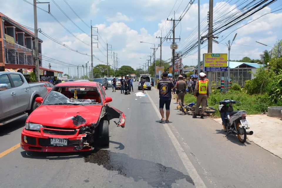 สลดรถเก๋งชนกับรถจักรยานยนต์พังยับทั้งคู่ ดับ 1 ราย บาดเจ็บ 2 ราย วันนี้