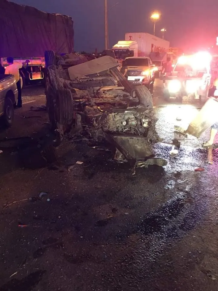 สาเหตุเบื้องต้น : มีรถยนต์ข้ามเกาะกลางจากฝั่งขาเข้า กทม. มาฝั่งขาออก กทม.(รอตรวจสอบว่าคันใด) แล้วชนกับรถอีก 2 คัน และทำให้กีดขวางการจราจรทางหลักทั้ง 3 ช่องจราจร