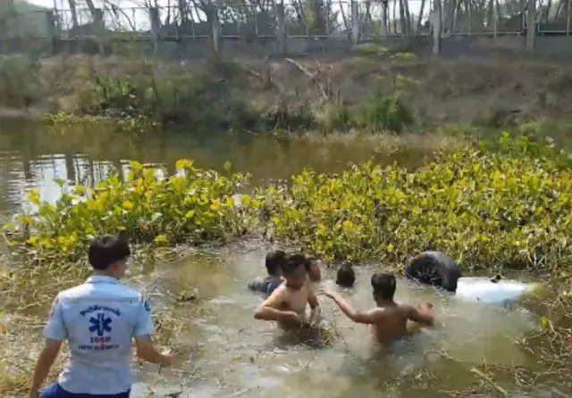 พลเมืองดี ผ่านมาพบ จึงรีบขอความช่วยเหลือจาก สายด่วน 1669 และ 191 พร้อมกับกระโดดลงไปในน้ำ พยายามช่วยเหลือแต่ไม่สำเร็จ