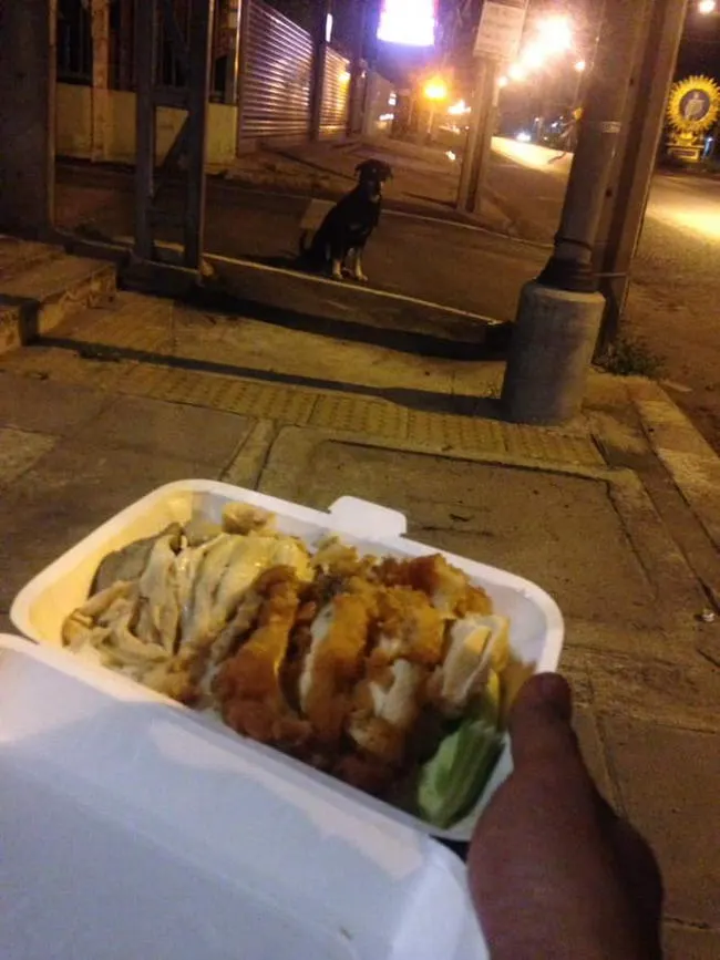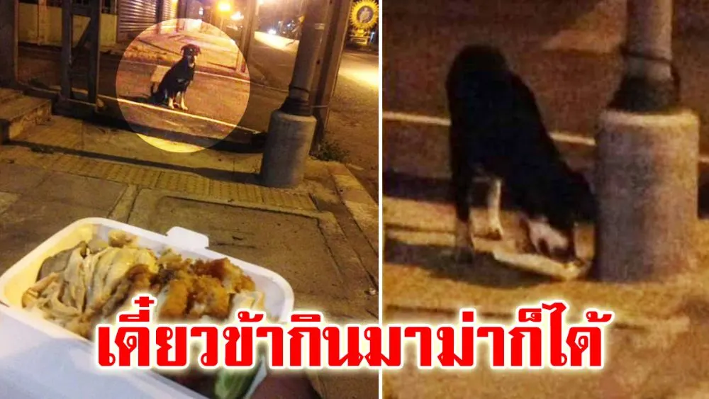 ผู้ใช้เฟสบุ๊คชื่อว่า ทศพร เลิศวิลัย ได้แบ่งปันเรื่องราวในกลุ่มรักหมาว่า “ซื้อมาจะกินหลังเลิกงาน แต่ดูจากสภาพเอ็งแล้ว เอ็งต้องการข้าวมันไก่พิเศษกล่องนี้มากกว่าข้าว่ะ (หนังติดกระดูกเลย) เดี๋ยวข้ากินมาม่าก็ได้ กินให้หมดนะ”