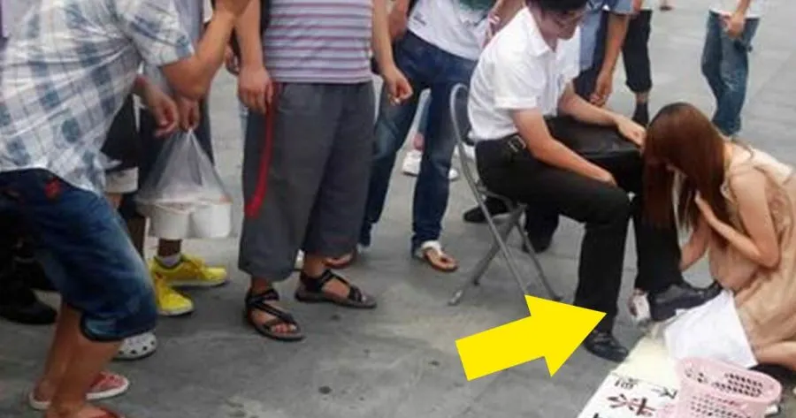 หลังจากที่ผมเลือกซื้อของขวัญเสร็จแล้วเดินออกจาห้างสรรพสินค้าแห่งหนึ่ง จู่ๆ สายตาของผมก็พลันเหลือบไปเห็นเด็กหญิงคนหนึ่ง ในมือของเธอถืออะไรสักอย่างและกำลังมองมาทางผมสายตาของเด็กคนนั้นทำให้ผมต้องเดินเข้าไปหา เด็กน้อยคนนี้อายุน่าจะประมาณ 13-14 ปี แต่งตัวดูสะอาดเรียบร้อย ผมเผ้าก็หวีเข้ารูปเข้าทรง แต่ที่แตกต่างจากเด็กอื่นๆ ก็คือ ในมือเด็กคนนั้นถือป้ายภาพอันหนึ่งแทนที่จะเป็นไอศกรีมซักแท่ง แต่กลับเป็นภาพเด็กน้อยคนหนึ่งกำลังขัดรองเท้าอยู่ และมีข้อความเขียนว่า “หนูอยากได้อุปกรณ์ขัดรองเท้า”