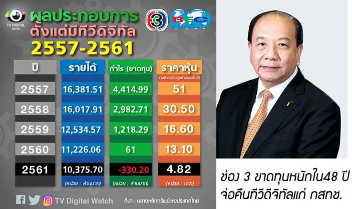 ช่อง 3 ขาดทุนหนักในรอบ 48 ปี จ่อคืนทีวีดิจิทัลหลังฟังเงื่อนไข กสทช. เร่งฟื้นรายได้ธุรกิจขายลิขสิทธิ์ละครบุกตลาดต่างประเทศ