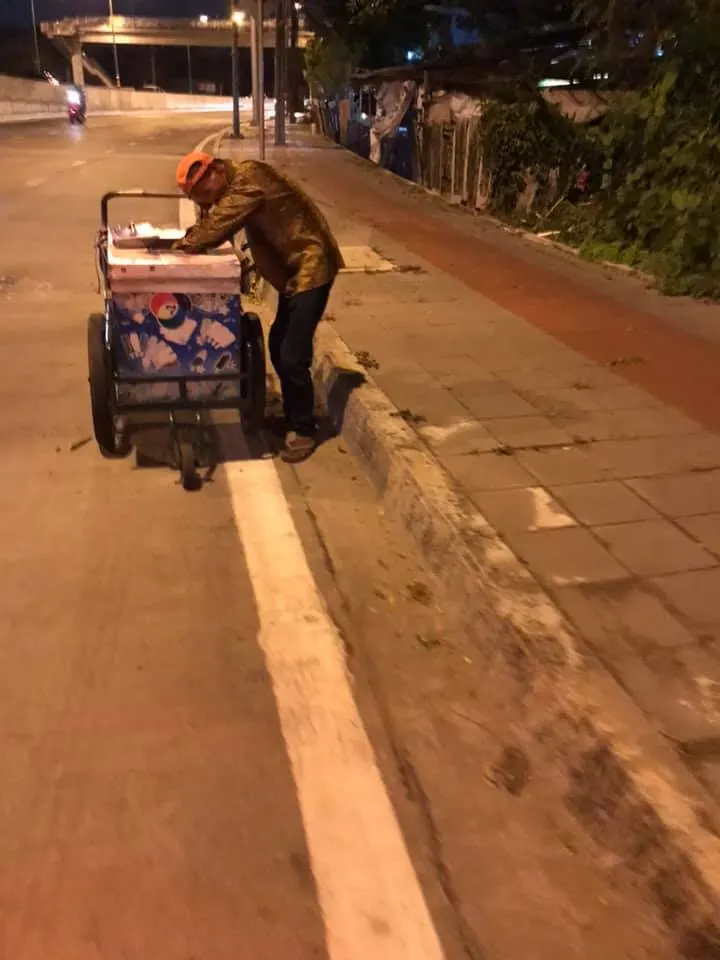 ผ่านถนนเลี่ยงเมืองนนท์ และเข็นขายไปเรื่อย ๆ ขอเป็น1กระบอกเสียง อยากให้คุณลุงขายดีๆ ช่วยๆกันอุดหนุนแกด้วยนะทุกคนที่ผ่านและเจอแก สงสารแกเพราะแกเดินไกลมากจริง ๆ