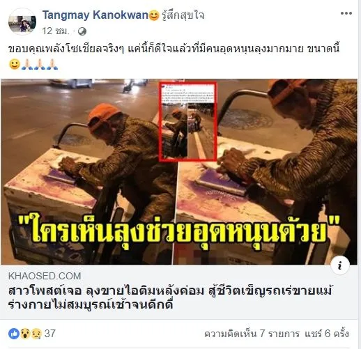 สาวใจบุญเคลื่อนไหว หลังช่วยเผยเรื่องราวชีวิตของลุงเข็นขายไอติม