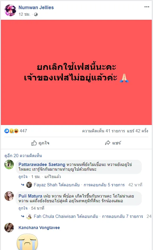 จากการตรวจสอบผู้ตายมีอาชีพรับงานถ่ายแบบ รับรีวิวสินค้าต่างๆ มีผู้ติดตามเกือบ 2 หมื่นคน ล่าสุดแสดงเป็นนางเอกเอ็มวีเพลง แฟนเก่าไม่มีสมอง วง Old Story Project ซึ่งจะปล่อยเอ็มวีวันเดียวกับที่เกิดเหตุนี้