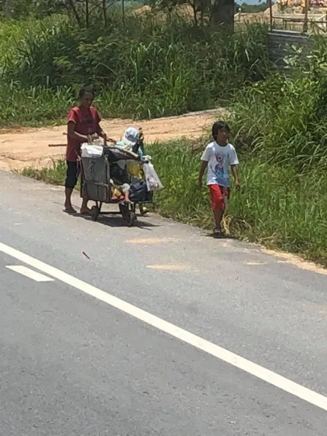 " จากเหนื่อยๆท้อๆ เห็นผู้หญิงคนนึงเดินเก็บขยะตามทางมีเด็กน้อยเดิมตาม 3 คน แดดก็ร้อนมากๆ รู้สึกมีพลังขึ้นมาเลย วันนี้มีตังค์มา 600 บาท กับน้ำเปล่า 1 ขวด แบ่งกับผมคนละครึ่งละกันครับ #สงสารเด็กๆต้องเดินแบบนี้ไปอีกนานแค่ไหน"