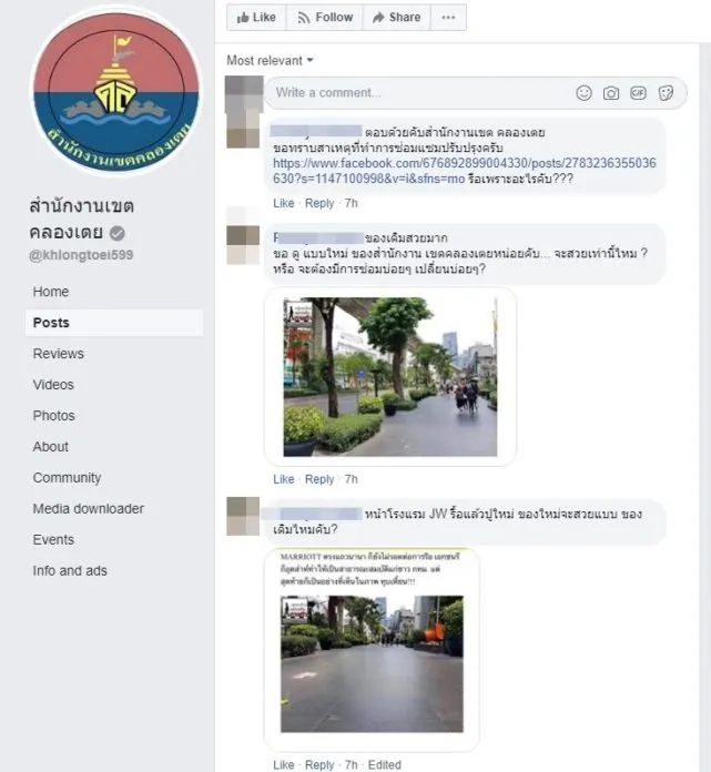 ล่าสุดจากกรณีดังกล่าวทำให้มีชาวเน็ตจำนวนมาก เข้าไปคอมเมนต์สอบถามที่หน้าเพจทางการของ สำนักงานเขตคลองเตย เพื่อขอทราบเหตุผลในการรื้อทางเท้าดังกล่าวทำไม แต่ขณะนี้ยังไม่คำชี้แจงใดๆออกมา