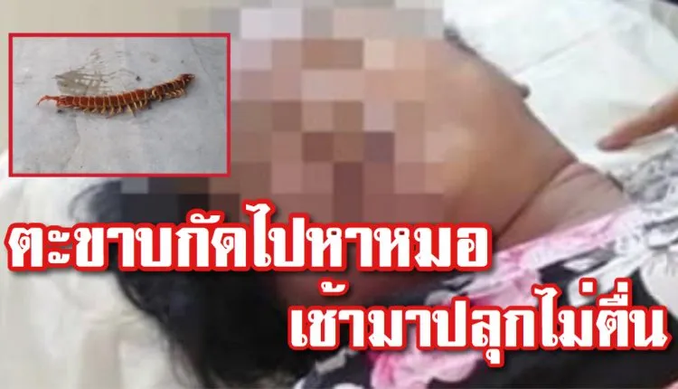 สาวใหญ่ถูกตะขาบกัด ไปหาหมอ กลับมาบ้านบ่นปวดมาก จึงกินยานอน รุ่งเช้าลูกชายมาปลุกไม่ตื่น พบนอนแน่นิ่งเสียชีวิต