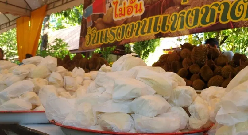 ส่วนผู้ที่มารอรับกิน ทุ เ รี ย น ฟ รี ก็มากันจากทั่วสารทิศ บางคนมาถึงวัดตั้งแต่ 6 โมงเช้า บอกว่าอยากมาร่วมงานและกินทุเรียนในวันนี้ ส่วนทางวัดนั้นเบื้องต้นได้เตรียมทุเรียนมาก่อน 5,000 กก. แต่ถ้าไม่พอก็พร้อมมีมาส่งตรงถึงวัดตลอดเวลา