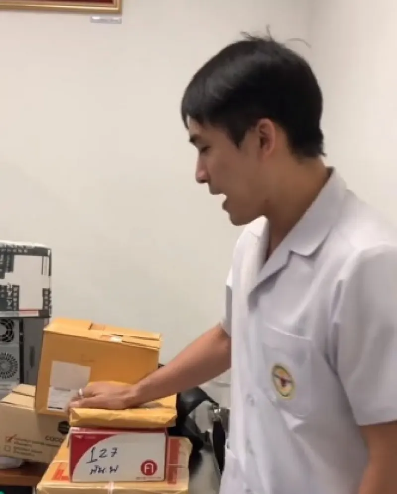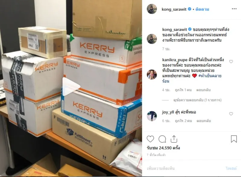โดยเจ้าตัวได้โพสต์คลิปวีดีโอเผยภาพภายในห้องทำงานของตนเอง ที่เต็มไปด้วยกล่องพัสดุ อุปกรณ์คลายร้อน และเครื่องปฐมพยาบาลต่างๆเป็นจำนวนมาก โดยได้ระบุข้อความว่า...