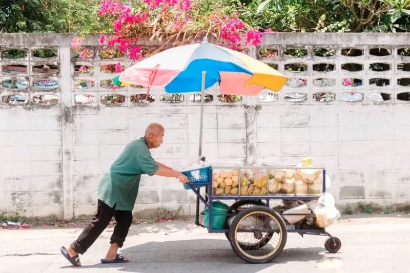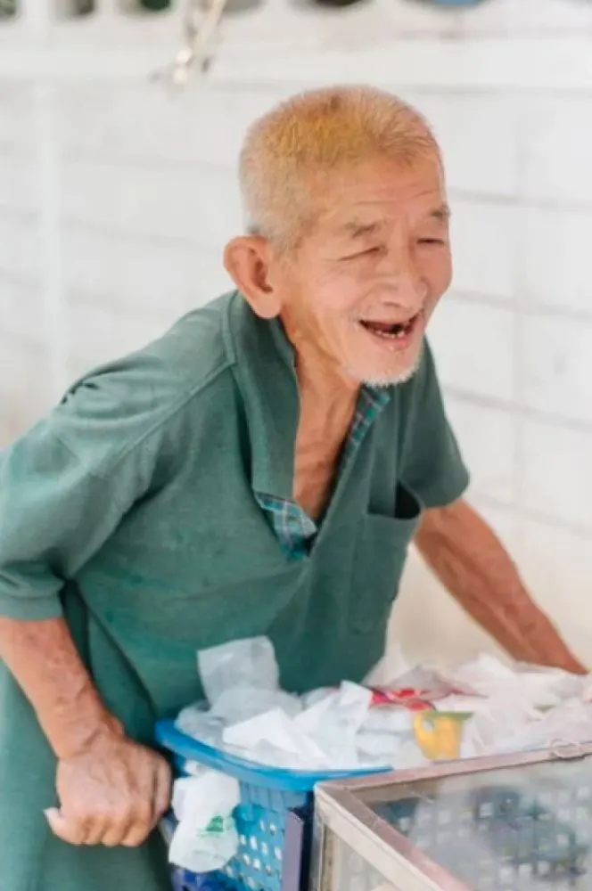 “ลุงคุง” ในวัย 60 ปี ชาวบ้านต่างรู้จักเป็นอย่างดีเพราะลุงขายผลไม้แบบนี้มาตั้งแต่หนุ่ม ๆ และยังคงทำทุกอย่างเหมือนเดิม แม้จะอายุมากแล้วก็ตาม ลุงก็ยังทำทุกอย่างเองไม่ว่าจะเป็น การขึ้นรถเมล์ไปเลือกผลไม้เองที่ตลาดเพื่อนำมาขาย ไปจนถึงการเดินเท้าเข็นรถเข็นที่แสนจะหนักด้วยตัวเองเพียงลำพัง