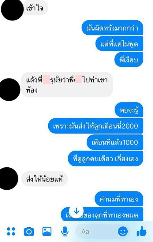 หลังเราคลอดลูกได้ 2 เดือน ก็ได้รู้ความจริงว่า สามีทำผู้หญิงคนนั้นท้อง ตนจึงโทร. ถามแม่ของสามี ปรากฏว่าแม่ของสามีก็ทราบแล้ว แต่ไม่รู้จะบอกเรายังไง ที่สำคัญเขาไปรับขวัญหลานทางโน้น ก่อนมาหาลูกเราอีก