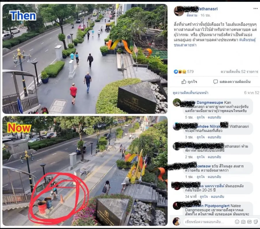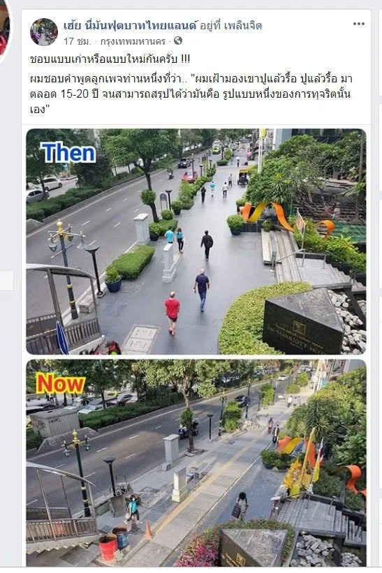 เมื่อวันที่ 2/5/62 ทางเพจ เฟสบุ้ค เฮ้ย นี่มันฟุตบาทไทยแลนด์ ได้โพส์ตรูปเปรียบเทียบ ฟุตบาท เก่า กับ หลัง กทม.ทำใหม่ หน้า โรงแรม JW Marriot ตามด้านล่าง