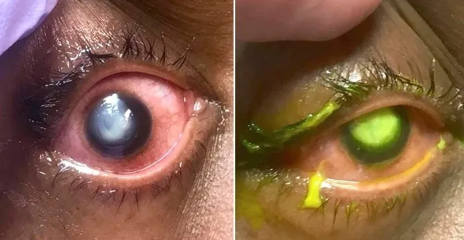 เมื่อวันที่ 29 เมษายนที่ผ่านมา จักษุแพทย์จากเพจเฟสบุ๊ก Vita Eye Clinic ในสหรัฐอเมริกา ได้โพสต์ภาพและข้อความฝากเตือนไปยังผู้ที่ชื่นชอบหรือใส่คอนแทคเลนส์เป็นประจำ โดยเป็นภาพดวงตาของคนไข้รายหนึ่งที่เผยให้เห็นกระจกตาของเขาที่ถูกแบคทีเรียกินจนสาหัสเพราะนอนหลับทั้งๆที่ใส่คอนแทคเลนส์อยู่