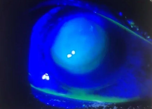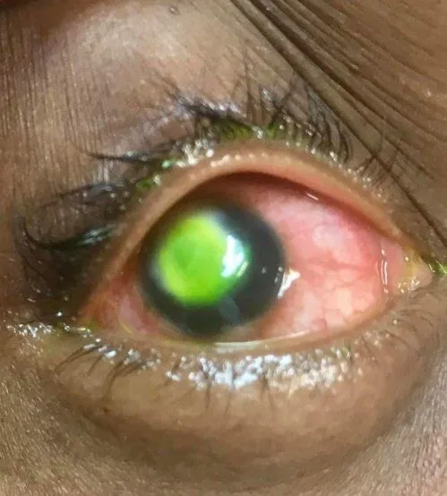 (ภาพฉายแสงเผยให้เห็นความเสียหาย ที่แบคทีเรียกินกระจกตา Photo credit: Vita Eye Clinic/facebook)