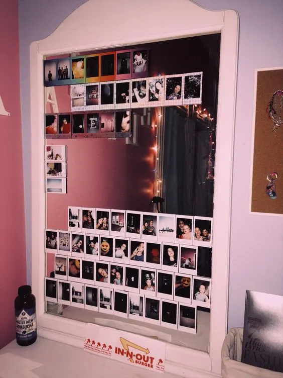 ติดลงบนกระจกบานใหญ่ เวลาแต่งตัว แต่งหน้า จะได้เหลือบมองเห็นรูปถ่ายได้ชัด ๆ