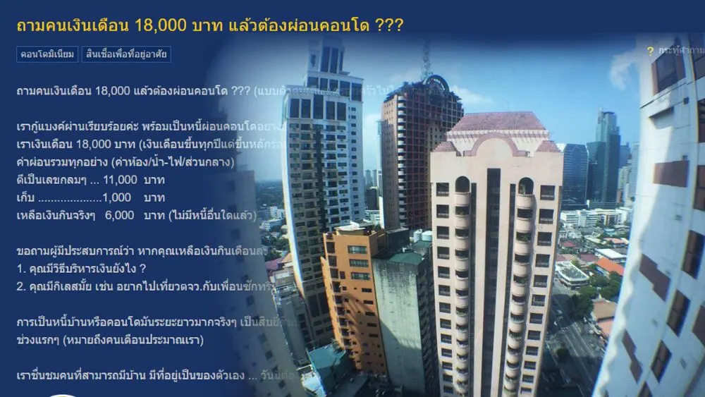 ถามคนเงินเดือน 18,000 บาท แล้วต้องผ่อนคอนโด ???