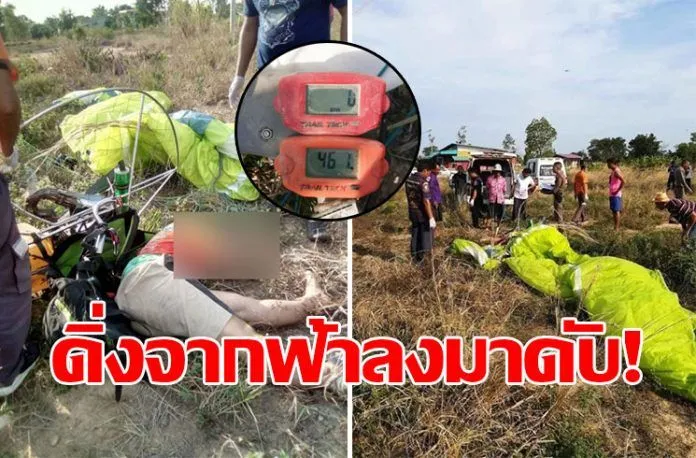 เมื่อวันที่ 3 พ.ค.62 ร.ต.อ พิชิต โยธาพล รองสารวัตร(สอบสวน) สภ.ปะคำ อ.ปะคำ จ.บุรีรัมย์ รับแจ้งมีคนตกจากเครื่องพารามอเตอร์ อยู่ท้ายหมู่บ้านสุขสำราญ ต.หูทำนบ อ.ปะคำ คาดว่าจะเสียชีวิต จึงรุดไปตรวจสอบที่เกิดเหตุพร้อม เจ้าหน้าที่กู้ภัยสว่างจรรยาธรรมจุดปะคำ เเพทย์เวรโรงพยาบาลปะคำ ร่วมชันสูตรพลิกศพ ที่เกิดเหตุเป็นลานทุ่งนา ตรงข้ามบริษัทมันสำปะหลัง บ้านสุขสำราญ ต.หูทำนบ พบศพนายประวัติ ศักดากุลคุณากร อายุ 49 ปี เสียชีวิตในสภาพคอหัก ขาหักทั้ง 2 ข้าง ใกล้กันพบเครื่องพารามอเตอร์ในสภาพพังยับเยิน