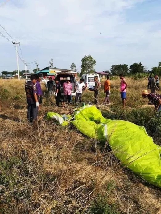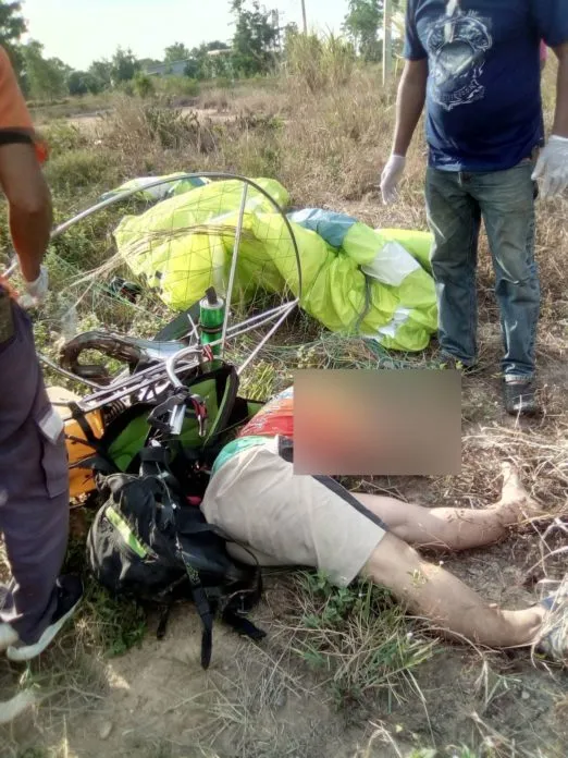 สอบถามพนักงานโรงงานแป้งมัน ซึ่งเห็นเหตุการณ์เล่าว่า เห็นผู้ตายนำเครื่องร่อนขึ้นบิน ตนก็มองตามเป็นระยะ สักพักในช่วงมีลมกระโชก จึงแหงนไปดูพบว่าร่มของพารามอเตอร์พับไปกับแรงลม แล้วเครื่องยนต์และตัวคนก็ดิ่งลงมากระแทกพื้นจนทำให้เสียชีวิตดังกล่าว