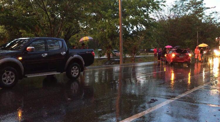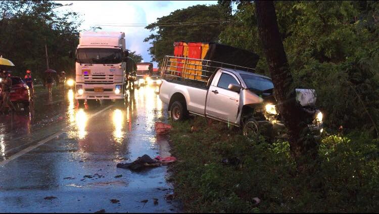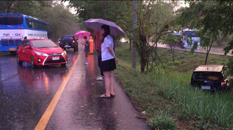 เกิดเหตุรถพลิกคว่ำลงข้างทางจำนวนหลายคันบนถนนสายเอเซียฝั่งขาล่องพัทลุง