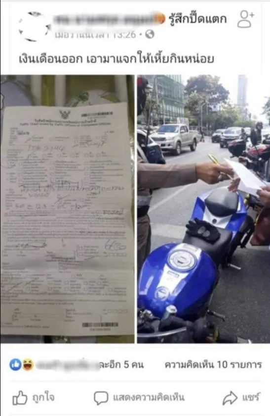 โดยทราบชื่อผู้โพสต์ภายหลังคือ นายมงคล (สงวนนามสกุล) ได้ขับรถจักรยานยนต์ YAMAHA R15 สีน้ำเงินทะเบียน 1 กช 3194 จันทบุรี ผ่านมาในลักษณะที่ไม่เห็นแผ่นป้ายทะเบียน เจ้าหน้าที่จึงเรียกให้หยุดพร้อมขอดูใบอนุญาตขับขี่และแสดงสำเนาคู่มือจดทะเบียนรถ ก่อนออกใบสั่งในข้อหาติดแผ่นป้ายทะเบียนไม่ถูกต้องตามกฎกระทรวง (ป้ายยัดซุ้ม)