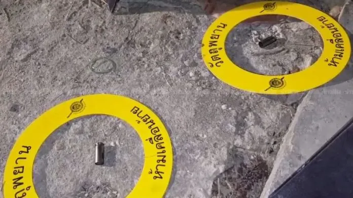 ที่เกิดเหตุ ลานหน้าบ้านพบศพ นายรัฐศักดิ์ เจริญศักดิ์สิริกุล อายุ 45 ปี อยู่บ้านเลขที่ 65 หมู่ 3 ต.ท่าแร้งออก อ.บ้านแหลม จ.เพชรบุรี อยูในสภาพถูกยิงเข้าที่หลังหูซ้าย แก้มขวา มุมปากขวา หัวไหล่ขวา ท้ายทอย ใต้ราวนมขวา หน้าท้องขวา สะโพกขวา และที่หน้าท้อง อีก 2 แผล ใกล้กันพบปลอกกระสุนปืนขนาด 9 ซุปเปอร์ ตกอยู่จำนวน 8 ปลอก และกระสุนที่ยังไม่ได้ยิง 1 นัด ตกกระจายอยู่