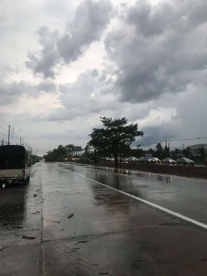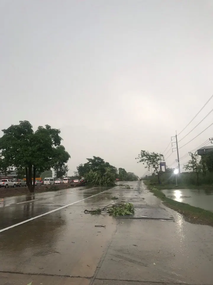 เมื่อวานนี้(4 พ.ค.2562) ช่วงเย็นเกิดพายุฝนตกหนัก รถติดหนักทั้ง 2 ฝั่ง ถนนบางบัวทอง-สุพรรณบุรี เสาไฟฟ้าและต้นไม้ล้มเป็นทางยาว ใกล้บริเวณโรงงานไฮเนเก้น หน้าอบต.ไทรใหญ่ อ.ไทรน้อย จ.นนทบุรี