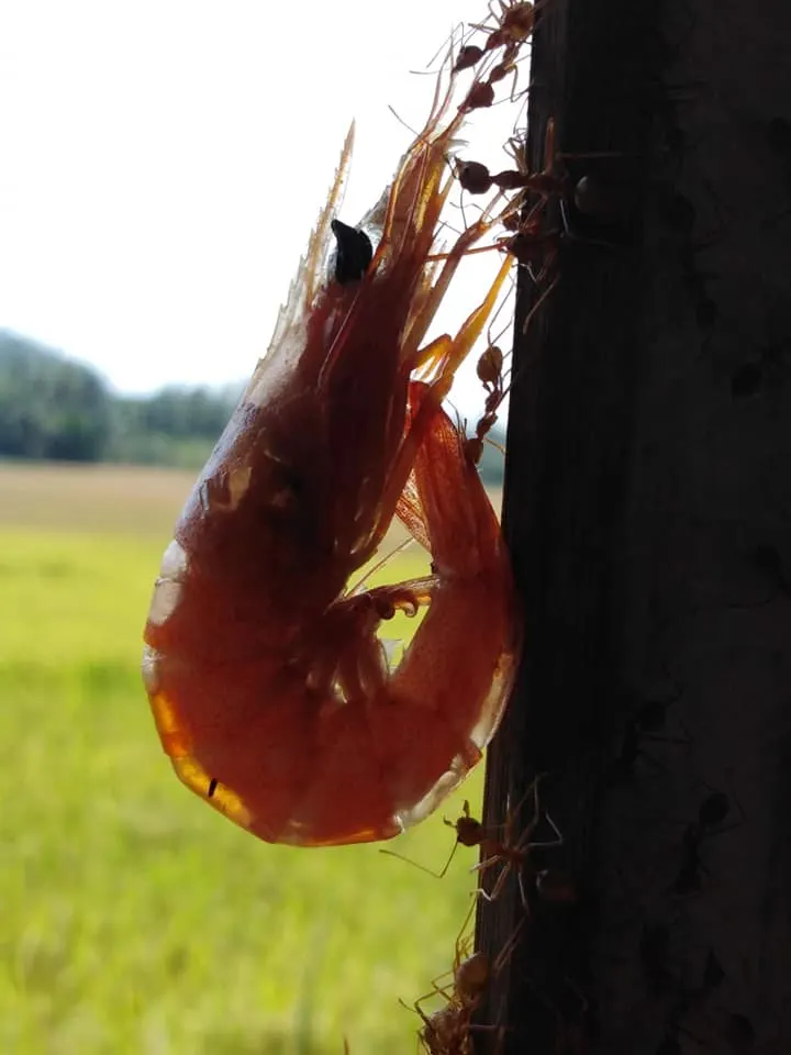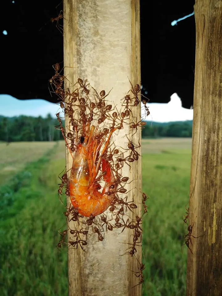 ชาวเน็ตแห่แชร์ !! เหล่า มดงาน หลายตัวช่วยกันลากกุ้งกลับรัง #นางพญาต้องได้กินกุ้ง