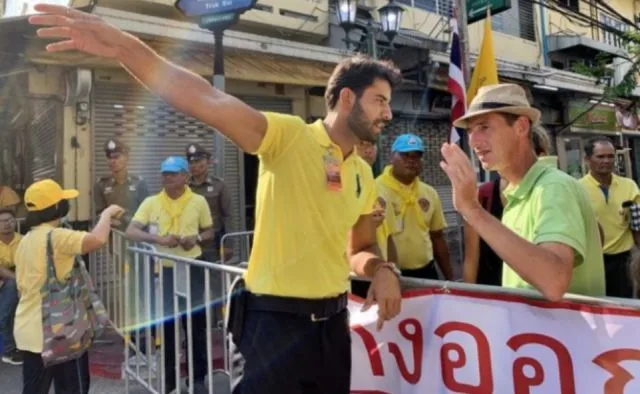 วันที่ 5 พฤษภาคม ที่บริเวณจุดคัดกรองถนนดินสอฝั่งใต้ พบนายฮูมาน ปีเชสเคียน (Hooman Pezeshkian) หนุ่มออฟฟิศชาวอิหร่าน ทำงานอยู่ในบริษัทก่อสร้างแก่งหนึ่งที่พัทยา จ.ชลบุรี ใส่เสื้อเหลืองร่วมแสดงความจงรักภักดี พร้อมเป็นจิตอาสาประจำอยู่ที่จุดคัดกรองถนนดินสอ ฝั่งใต้ คอยให้ความช่วยเหลือชาวต่างชาติที่ต้องการเดินทางผ่านบริเวณนี้