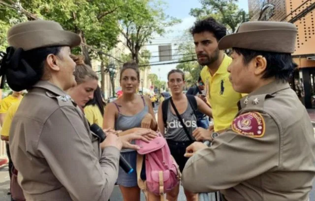 โดยพูดคุยสื่อสารให้เกิดเข้าใจ และรับรู้ถึงกฎระเบียบเกี่ยวกับการแต่งกายที่สุภาพ ขณะสัญจรผ่านพื้นที่ประกอบพระราชพิธี รวมทั้งร่วมกับเจ้าหน้าที่ตำรวจท่องเที่ยวของไทยอธิบายแนะนำการเดินทางในเส้นทางอื่นอย่างแข็งขันด้วยรอยยิ้มและเป็นกันเอง