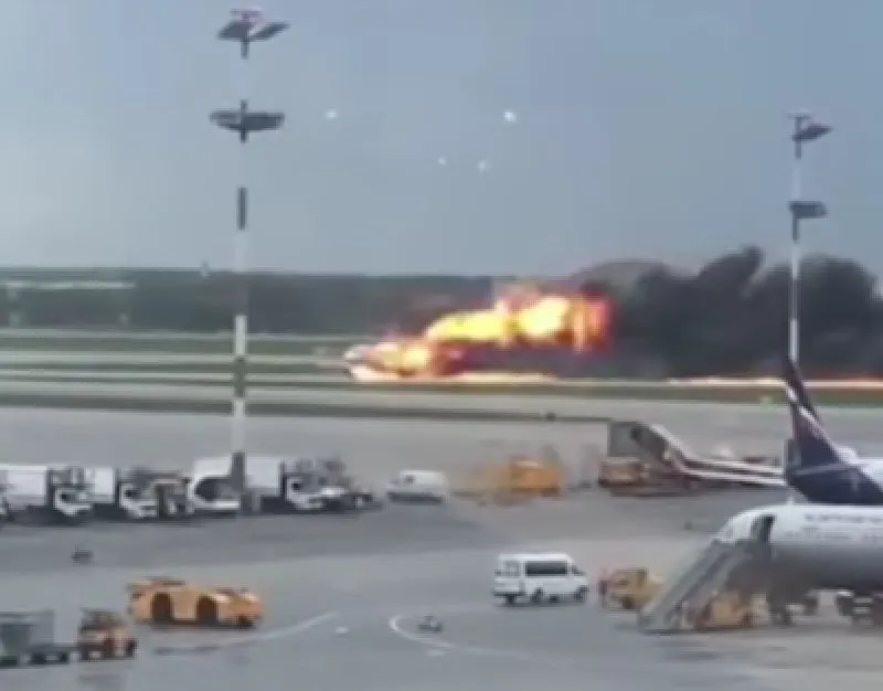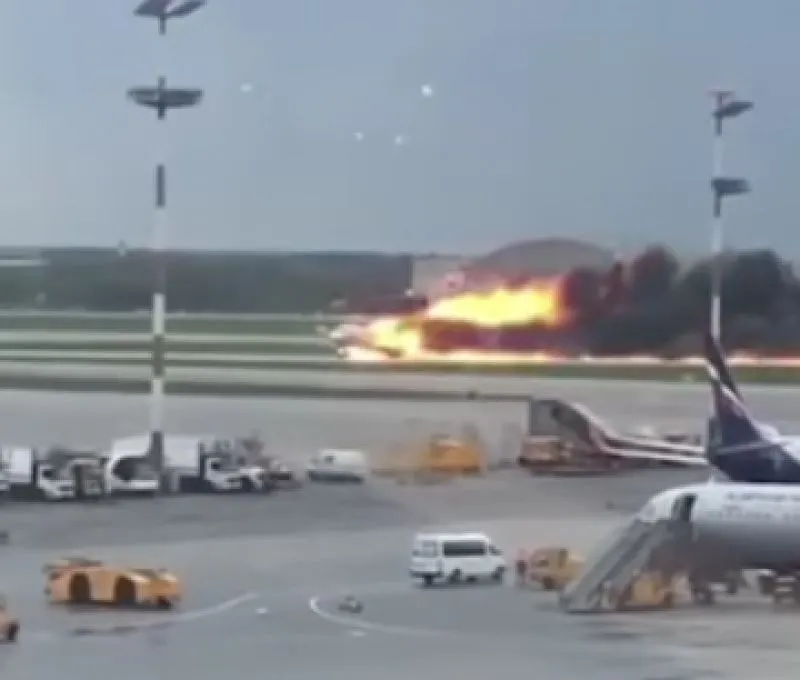 ล่าสุด สำนักข่าว อาร์ที ของรัสเซีย เผยแพร่คลิปวิดีโอจากกล้องรักษาความปลอดภัยของท่าอากาศยานนานาชาติ เซเรเมเตียโว ในกรุงมอสโก แสดงให้เห็นวินาทีที่ เครื่องบิน ซุคฮอย ซุปเปอร์เจ็ต-100 ของสายการบิน แอโรฟลอต ของรัสเซีย ลงจอดฉุกเฉินแล้วกระแทกพื้นจนเกิดไฟลุกท่วม เมื่อวันอาทิตย์ที่ 5 พ.ค. 2562 ที่ผ่านมา