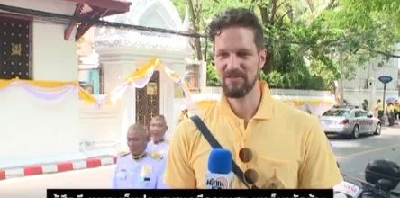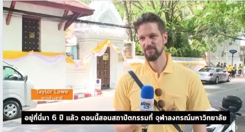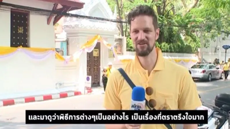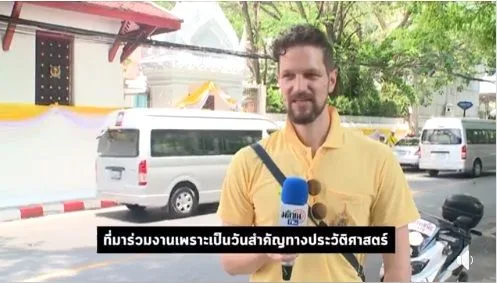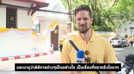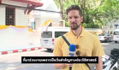 วันนี้ ( 5 พ.ค.) ผู้สื่อข่าวรายงานว่า อาจารย์หนุ่มแคนาดา ที่สอนอยู่คณะสถาปัตยกรรม ที่จุฬาลงกรณ์มหาวิทยาลัย อยู่เมืองไทยมานานถึง 6 ปี สุดปลื้ม ได้ใส่เสื้อเหลืองร่วมฉลองวันยิ่งใหญ่ของคนไทยด้วยเช่นกัน เนื่องจากเป็นวันที่สำคัญทางประวัติศาสตร์ เลยอยากเห็นบรรยากาศทุกอย่างของคนที่มาร่วมงานในวันนี้ มาดูพิธีการต่างๆที่สร้างความตราตรึงใจ หลังจากที่เมื่อวานนี้ได้ติดตามผ่านทีวี วันนี้เลยมาร่วมงานจริงเพื่อซึมซับบรรยากาศจริงๆ ที่ประชาชนมีความสุขอย่างแท้จริง