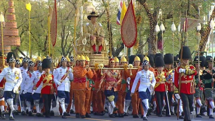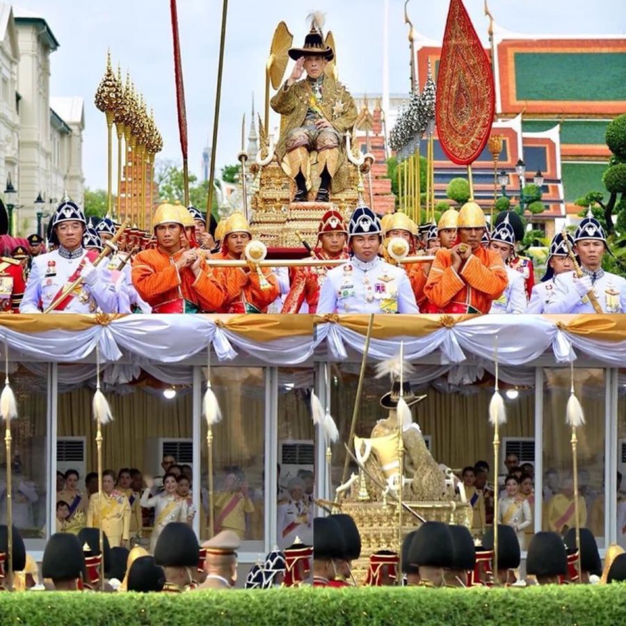 พระราชพิธีบรมราชาภิเษก วันที่ 5 พฤษภาคม 2562 พระบาทสมเด็จพระปรเมนทรรามาธิบดีศรีสินทรมหาวชิราลงกรณ พระวชิรเกล้าเจ้าอยู่หัว เสด็จพระราชดำเนินเลียบพระนครโดยขบวนพยุหยาตราทางสถลมารค