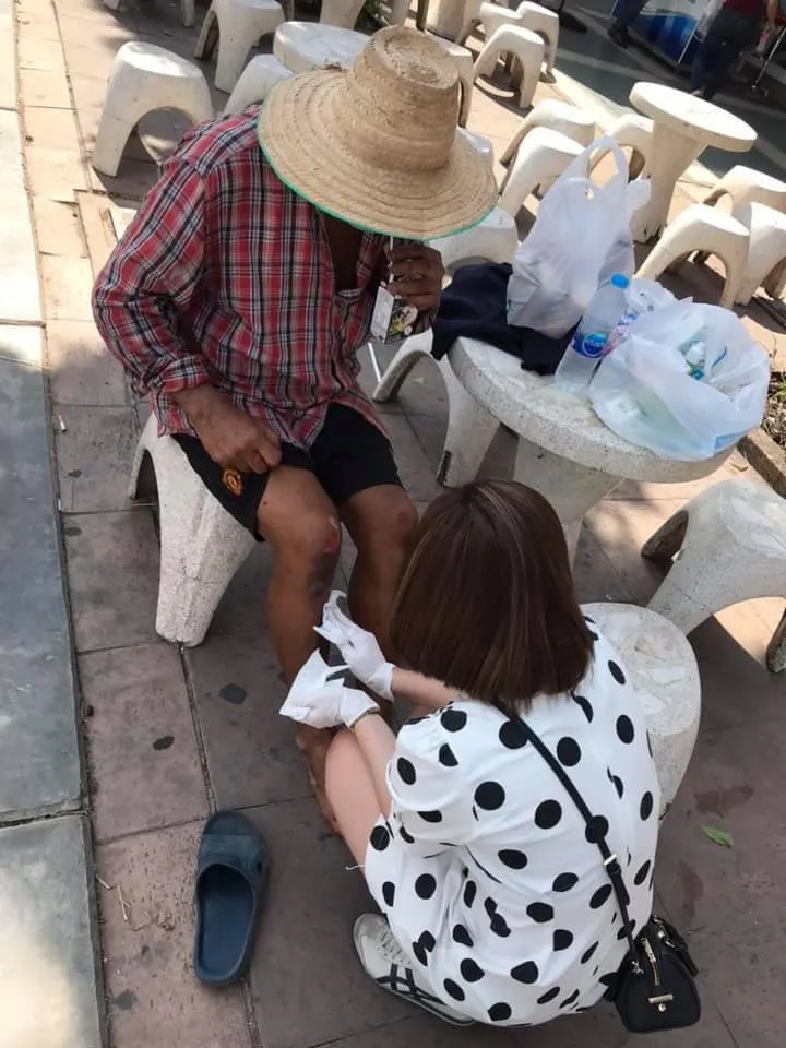ปาล์ม เล่าเหตุการณ์ผ่านเฟสบุ๊ค ที่ได้ช่วยเหลือคุณลุงท่านหนึ่งที่โคราช ได้รับบาดเจ็บ ตัดสินใจลงไปช่วยและทำแผลให้ คุณลุงท่านนี้ รถจักรยานเสียข้างทาง(โคกกรวด) เราได้ลงไปสอบถาม เพราะเห็นว่า ลุงเค้าจอดอยู่น่าสงสาร ก็ตามที่คิด ลุงเค้าจักรยานล้ม เป็นแผล ผมจึงได้สอบถามว่า ลุงจะไปไหน ลุงบอกจะกลับบ้าน แถวๆ ตลาดแค เราจึงอาสาไปส่ง และได้แวะซื้อ ยาใส่แผลและทำแผลให้ไป พอไปส่งถึงบ้าน กลับเจออีกคือ แม่ของคุณลุง นอนป่วย ร่างกายผอม (เนื่องจากเป็นมะเร็ง) เราก็เห็นแล้วก็ยิ่งสลด ลุงไปทำงานก็ไม่ได้เงิน แม่ที่อยู่บ้านก็ป่วยอีก เราก็ได้ช่วยเหลือไปเล็กน้อย ตามกำลัง สุดท้ายก็ขอให้คุณลุงสู้ๆนะครับ และขอให้คุณแม่ของคุณลุง กลับมาแข็งแรงนะครับ ถ้ามีโอกาส ผมจะไปเยี่ยมอีกครับ