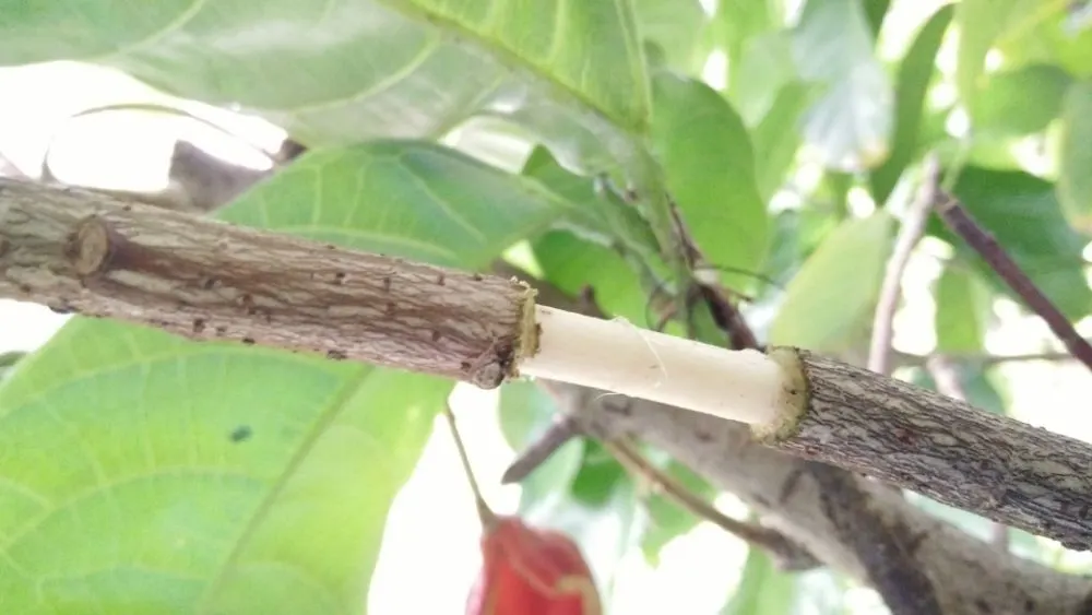- ควั่นกิ่งและเลาะเปลือกออก (ตามรูป)