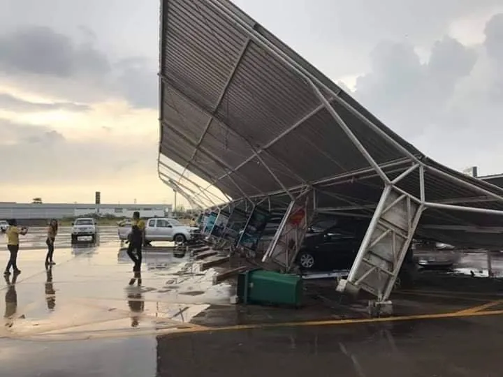 ที่เกิดเหตุพบหลังคาที่จอดรถขนาดใหญ่ ยาวหลายสิบเมตร พังถล่มลงมาทับรถยนต์รวมกว่า 10 คัน ได้รับความเสียหาย บางคันได้รับความเสียหายมาก บางคันได้รับความเสียหายเล็กน้อย อยู่ระหว่างรอตรวจสอบความเสียหายที่ชัดเจน